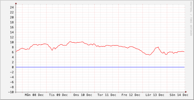 Aktuell temperatur: 6,3 °C Lufttryck: 1016 hPa Luftfuktighet: 89 %rh